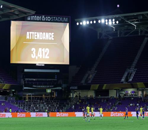 尽管巴黎和马竞的比赛吸引了80619名球迷来到洛杉矶的玫瑰碗,但韩国球队蔚山HD和南非豪门马梅洛迪日落在晚间的比赛也只有3412名球迷来到奥兰多体育场观战。切尔西和洛杉矶FC的比赛来了22137名观众,在亚特兰大可以容纳7.1万人的奔驰体育场显得有些冷清。上周四,国际足联官方报告称,世俱杯截至当下平均每场比赛上座人数为34773。